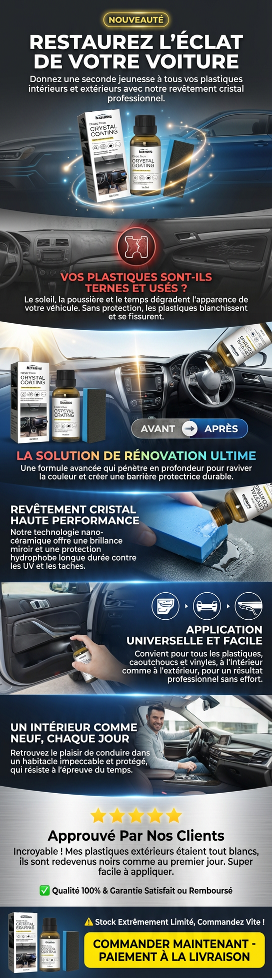 Produit de rénovation pour garnitures en plastique automobile avec revêtement cristallin